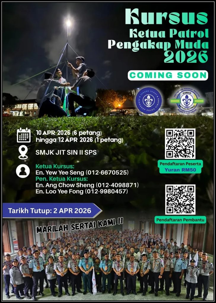 Sukacita dimaklumkan bahawa Kumpulan Pengakap Ke-40 Bukit Mertajam AKAN mengadakan perjumpaan pada hari Sabtu ini. 本团于这星期六将举办童軍活动。