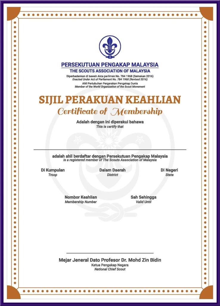 Contoh Kad Ahli Pengakap & Sijil Perakuan